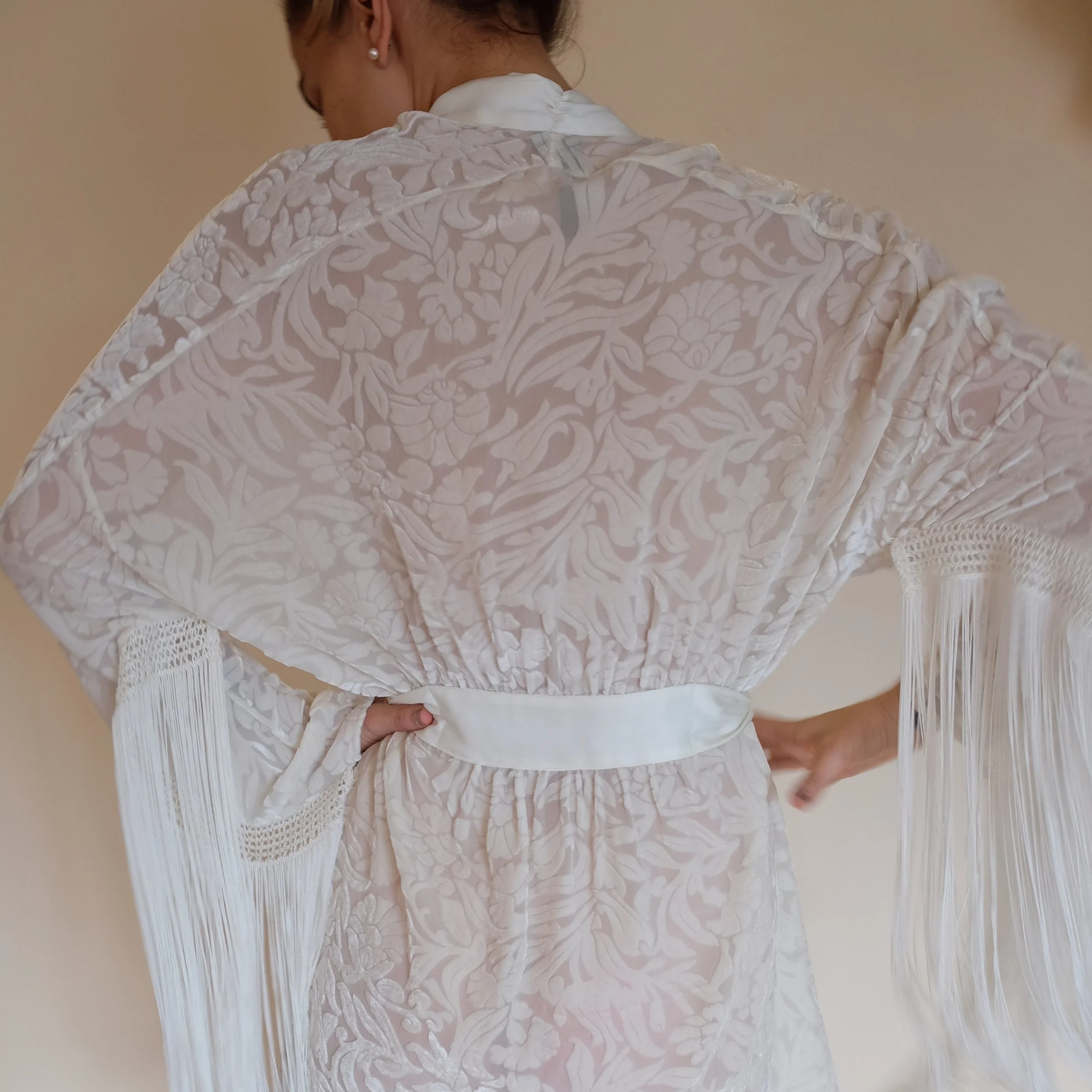 The bridal jacket to end all bridal jackets, Velvet? Check. Fringe? Check. Warm? Check.