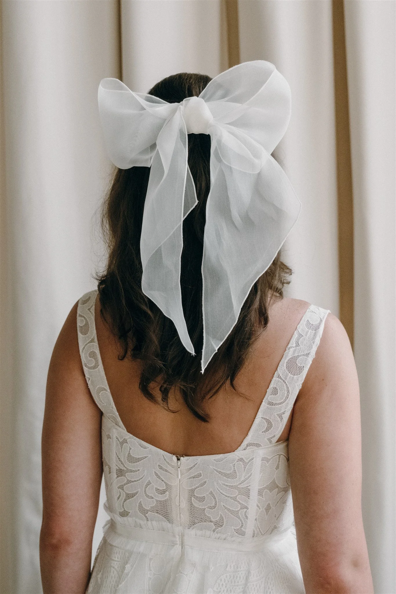 BOWS: We all know that bows are having a MOMENT. If you don’t want them on your gown, another fun way is to use them in your hair! We have a ton of newly added bows in our studio for your hair, the back of your gown, and even the top of your veil.