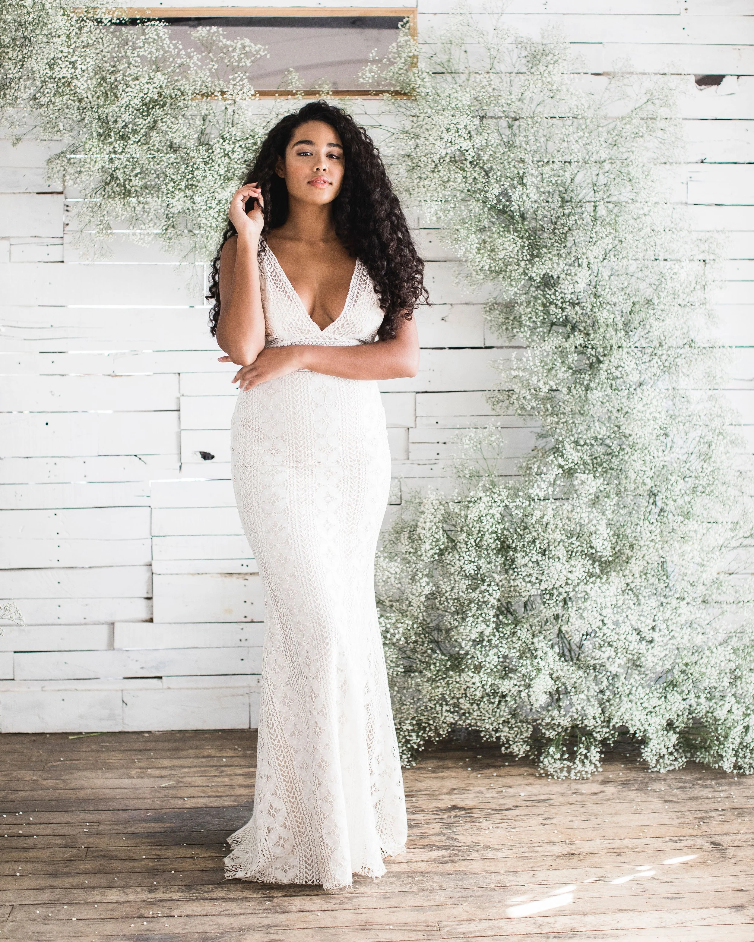 You can find this silhouette in our Dani Gown and Renee Skirt